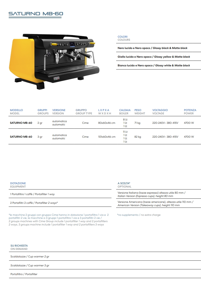 Naslovna > Oprema > Aparati za kavu > CIME SATURNO MB-60