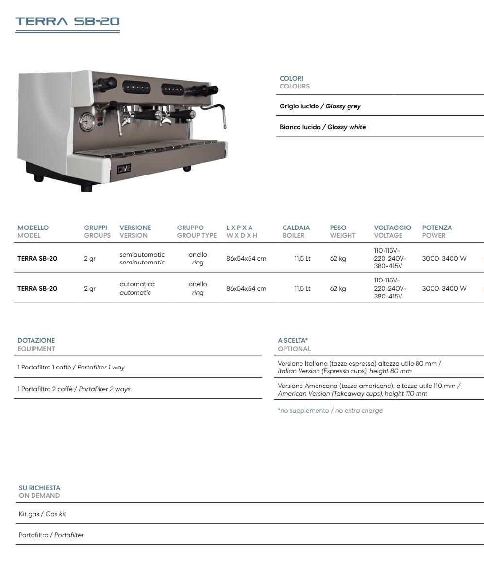 Naslovna > Oprema > Aparati za kavu > CIME TERRA SB-20